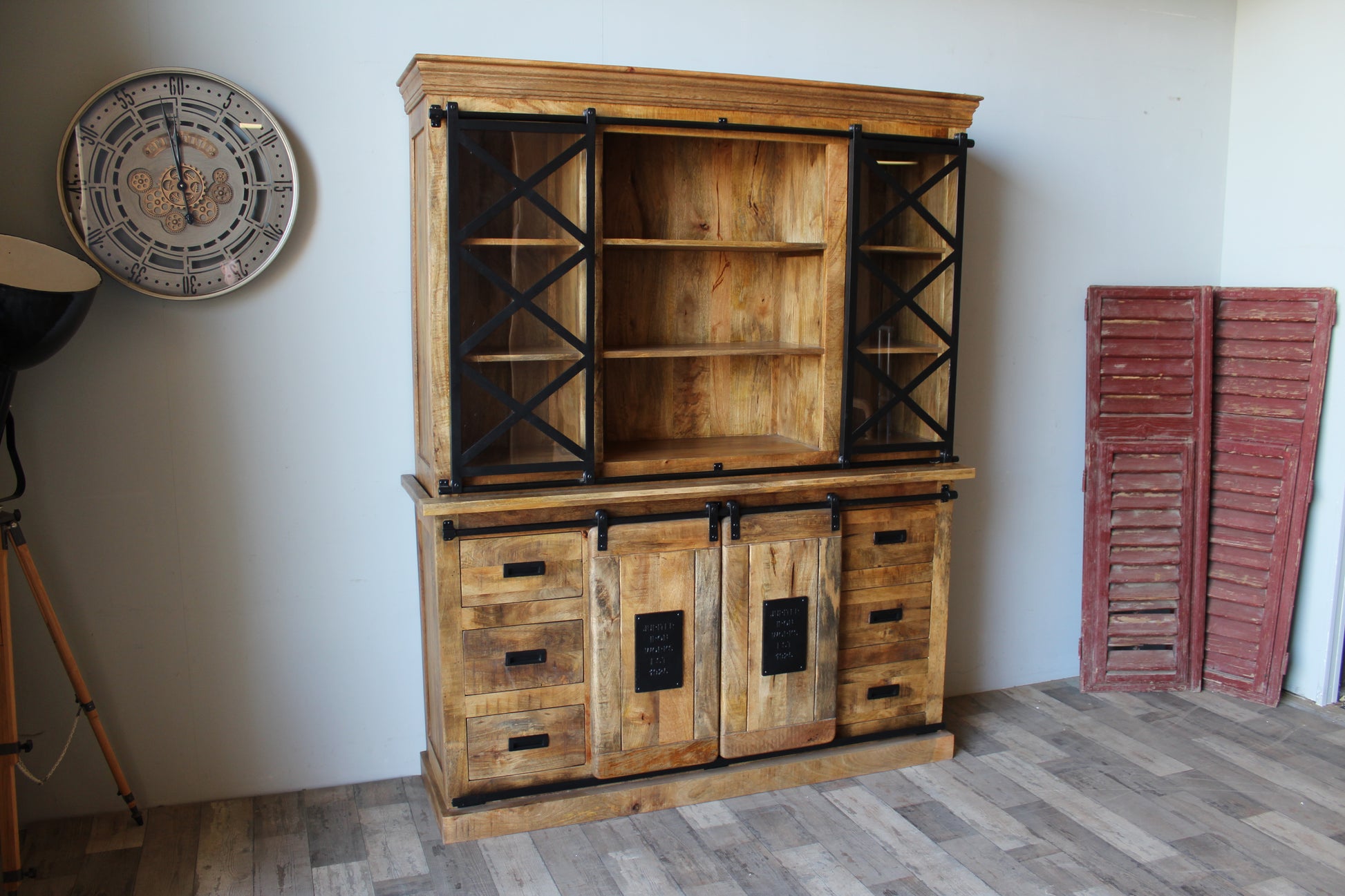 De buffetkast Jupiter is een stijlvolle en functionele kast, gemaakt van massief mangohout en uitgevoerd in een tijdloos design. De combinatie van hout en glas zorgt voor een warme, robuuste uitstraling die perfect past in zowel een modern als industrieel interieur.