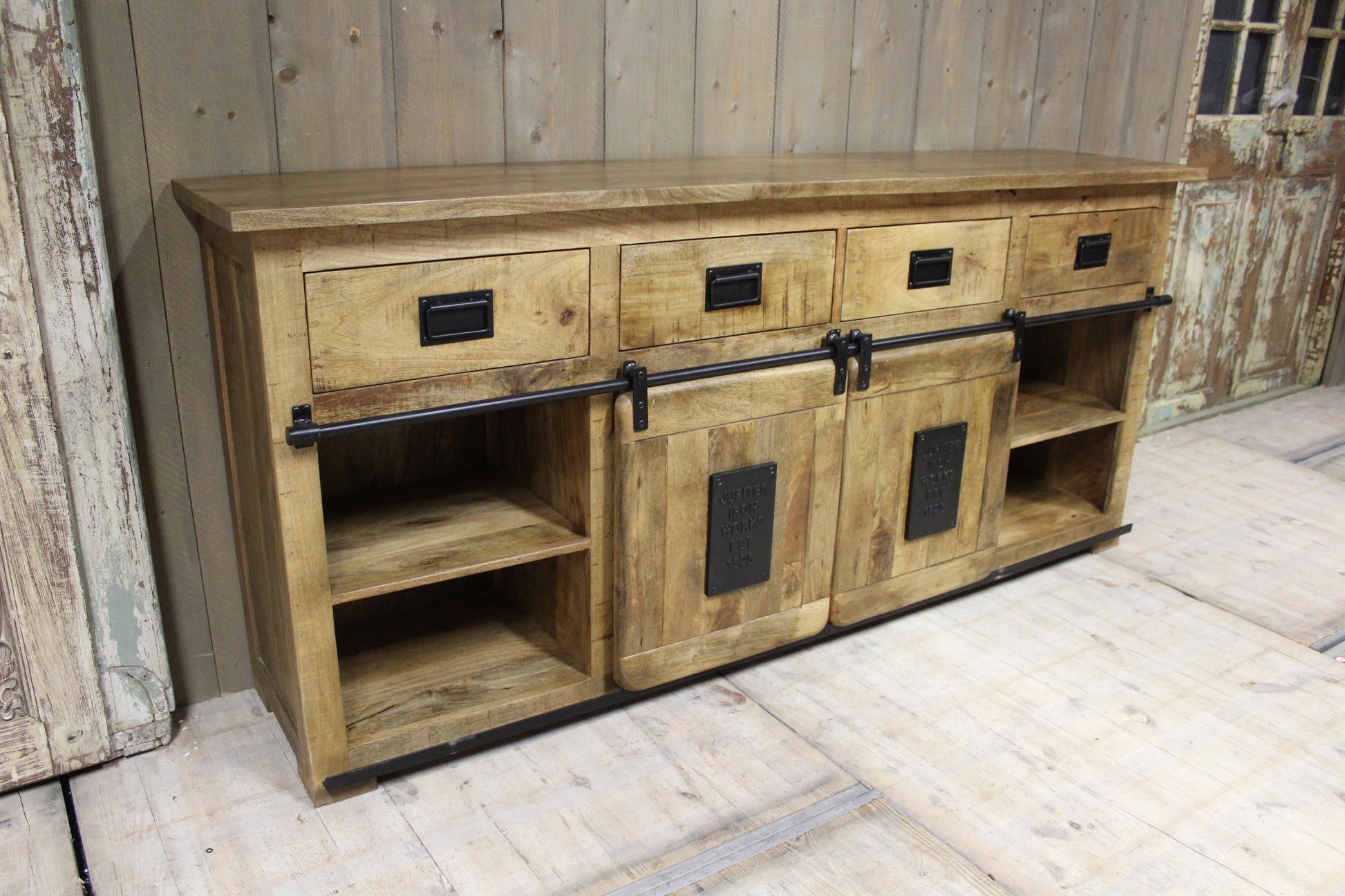 Het mangohouten dressoir Jupiter is een functioneel en stijlvol meubel met een karaktervolle uitstraling en biedt volop ruimte voor het opbergen van servies, woonaccessoires en andere spullen.
