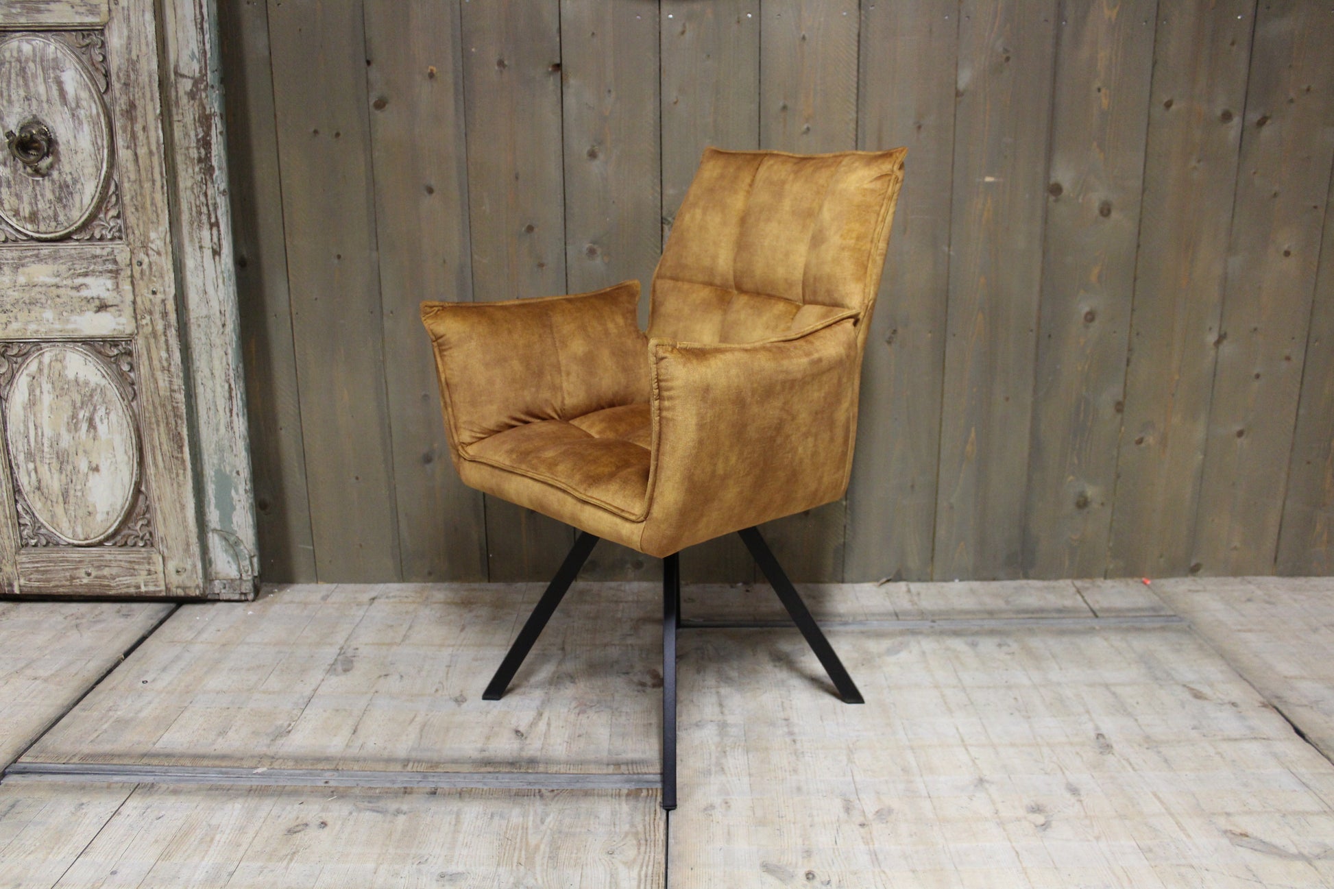 Breng luxe en comfort samen met deze elegante eetkamerstoel in velvet stof. Het terugdraaisysteem van 180 gradenbiedt niet alleen extra flexibiliteit, maar maakt de stoel ook praktisch voor elke situatie. De metalen onderstel geeft de stoel een moderne, industriële uitstraling, terwijl de armleuningen extra comfort en ondersteuning bieden tijdens lange maaltijden of gesprekken. De velvet stof zorgt voor een luxueuze look en feel, waardoor deze stoel perfect past in een verfijnde eetruimte of een trendy kantoor.