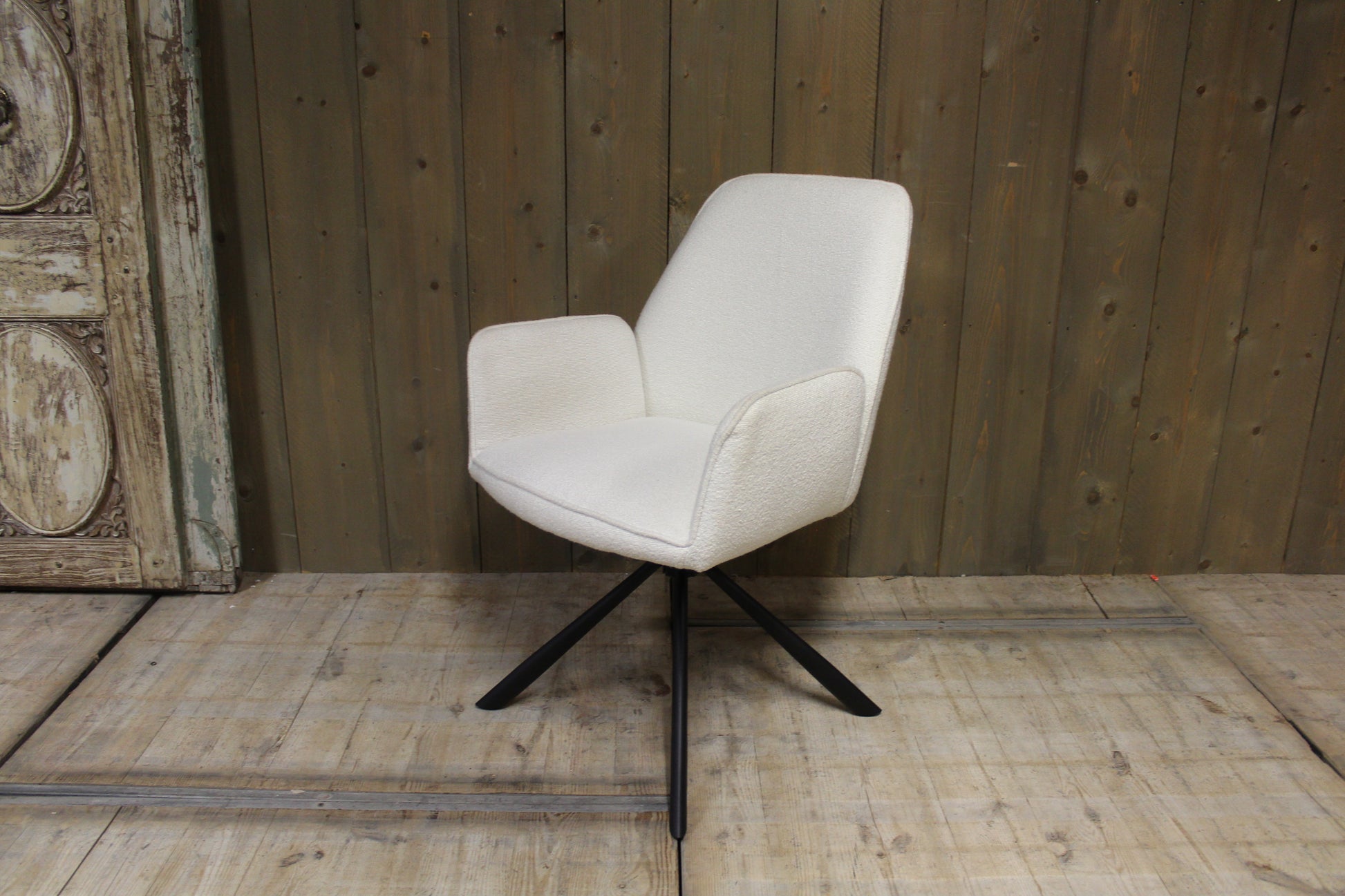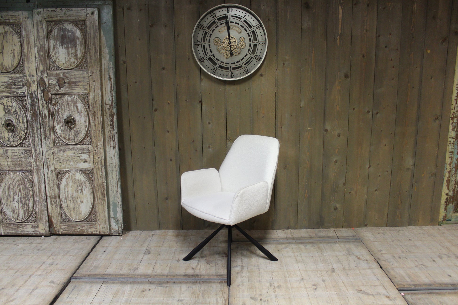Eetkamerstoel Gaby in teddy stof wit met draaifunctie