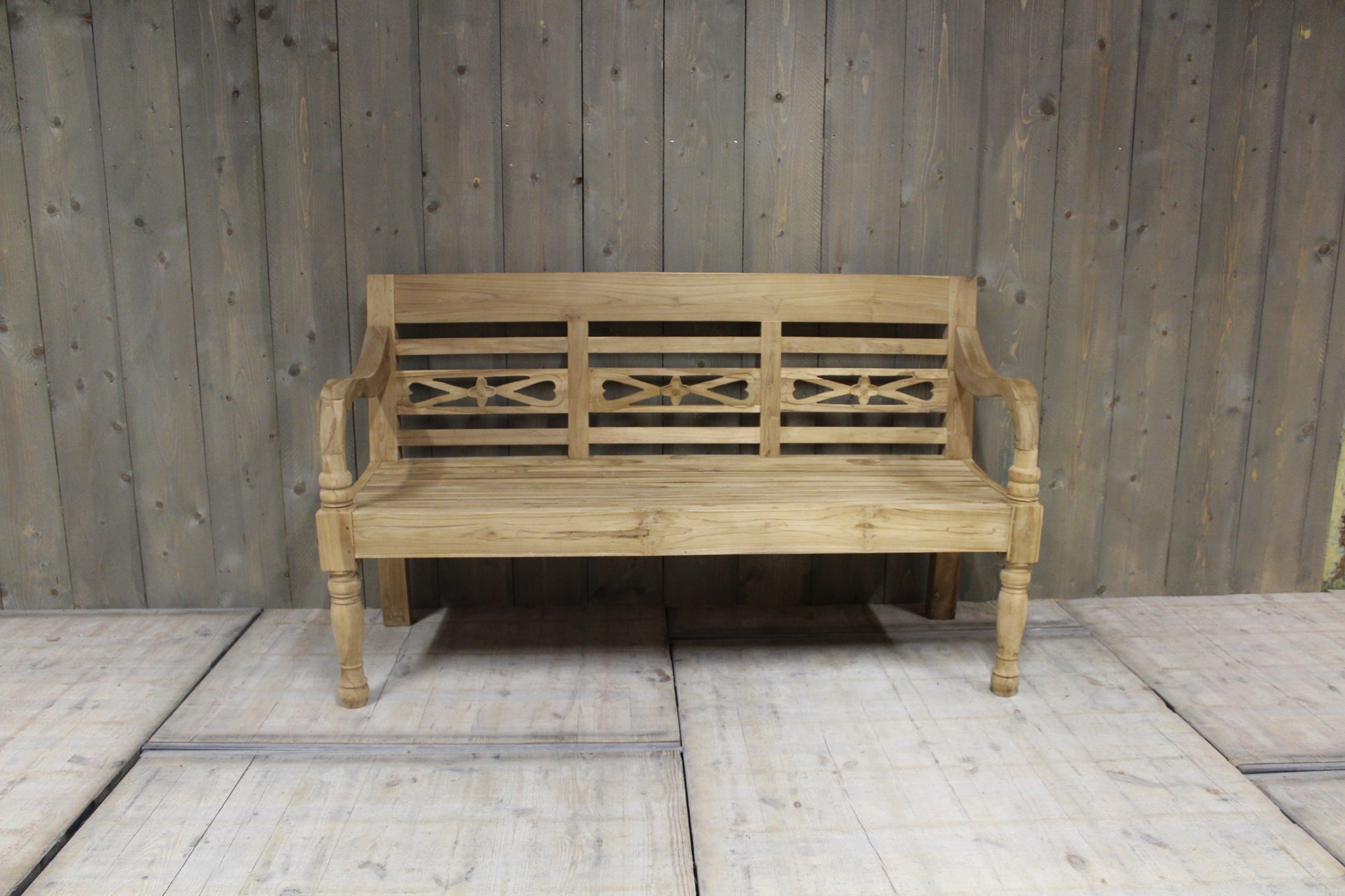 Handgemaakte tuinbank van gerecycled teakhout met bloemmotief