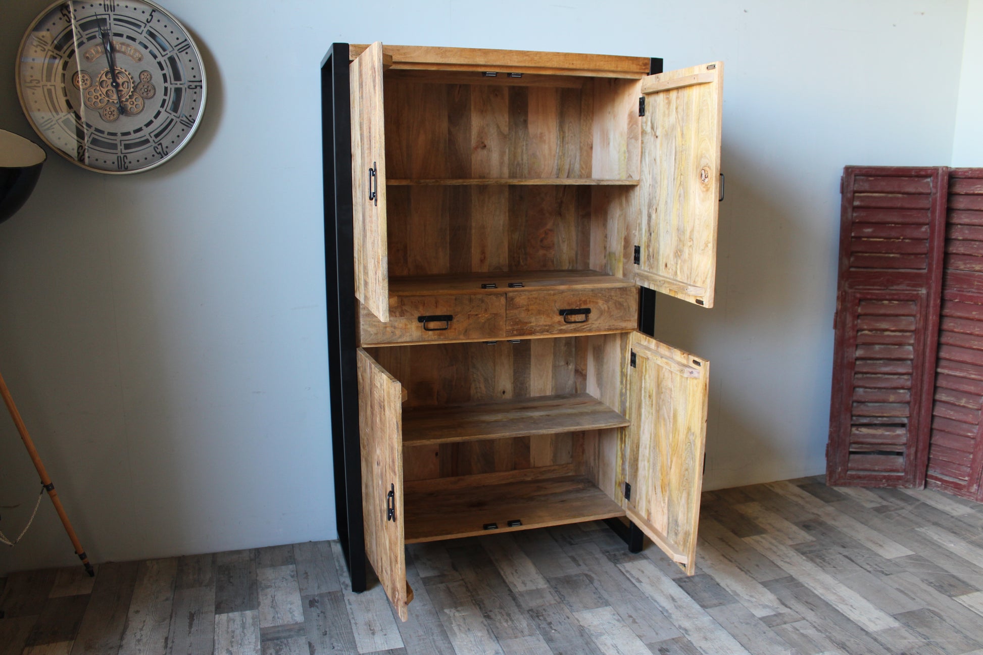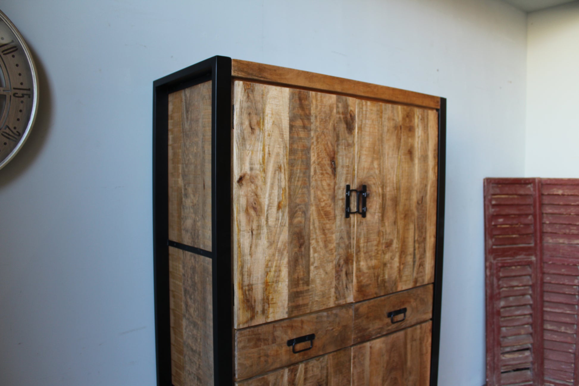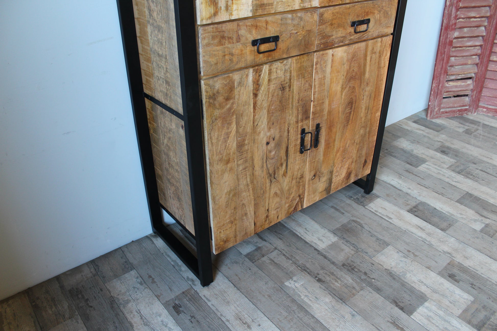 Wandkast van mangohout met deuren en lades