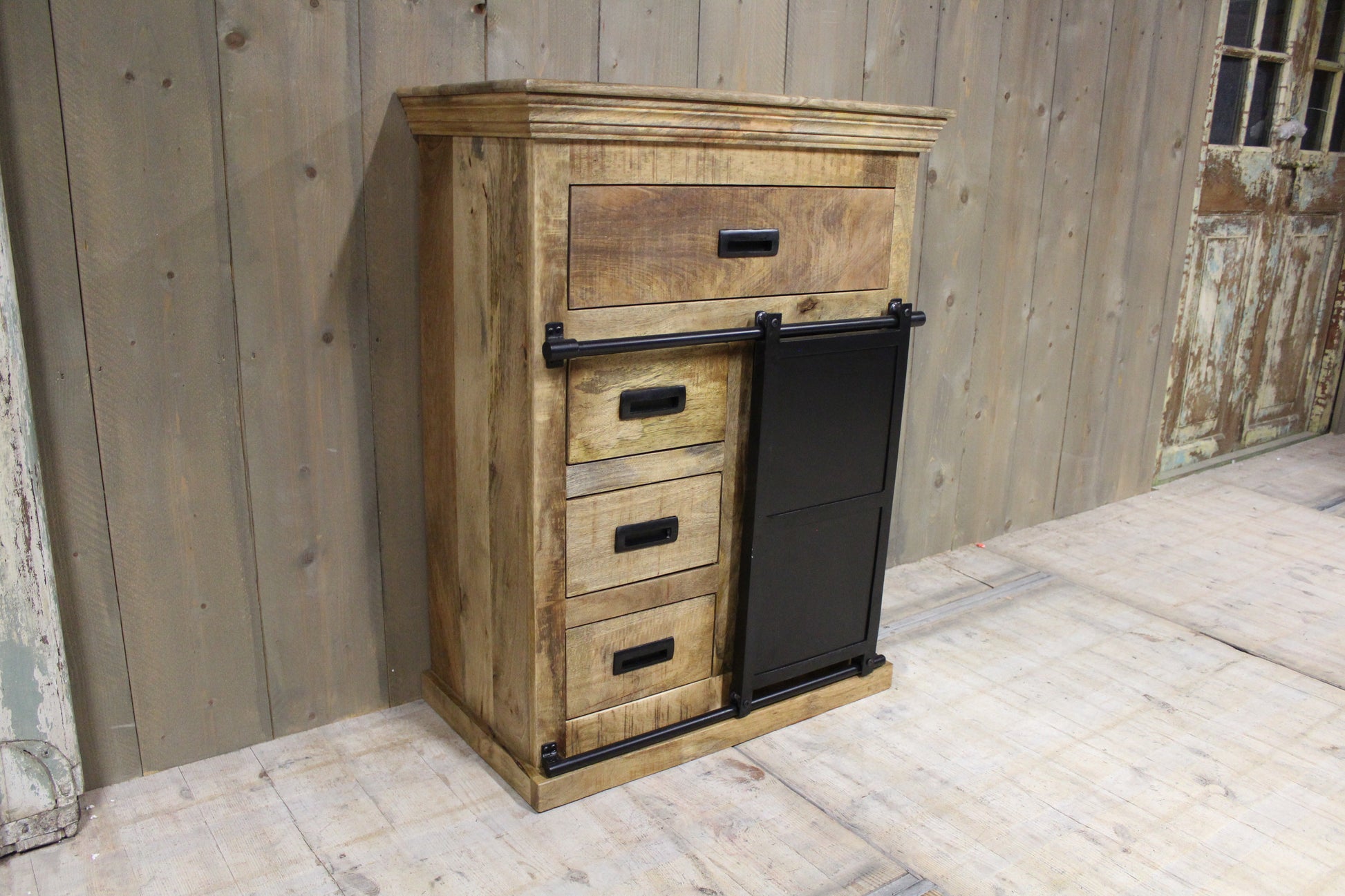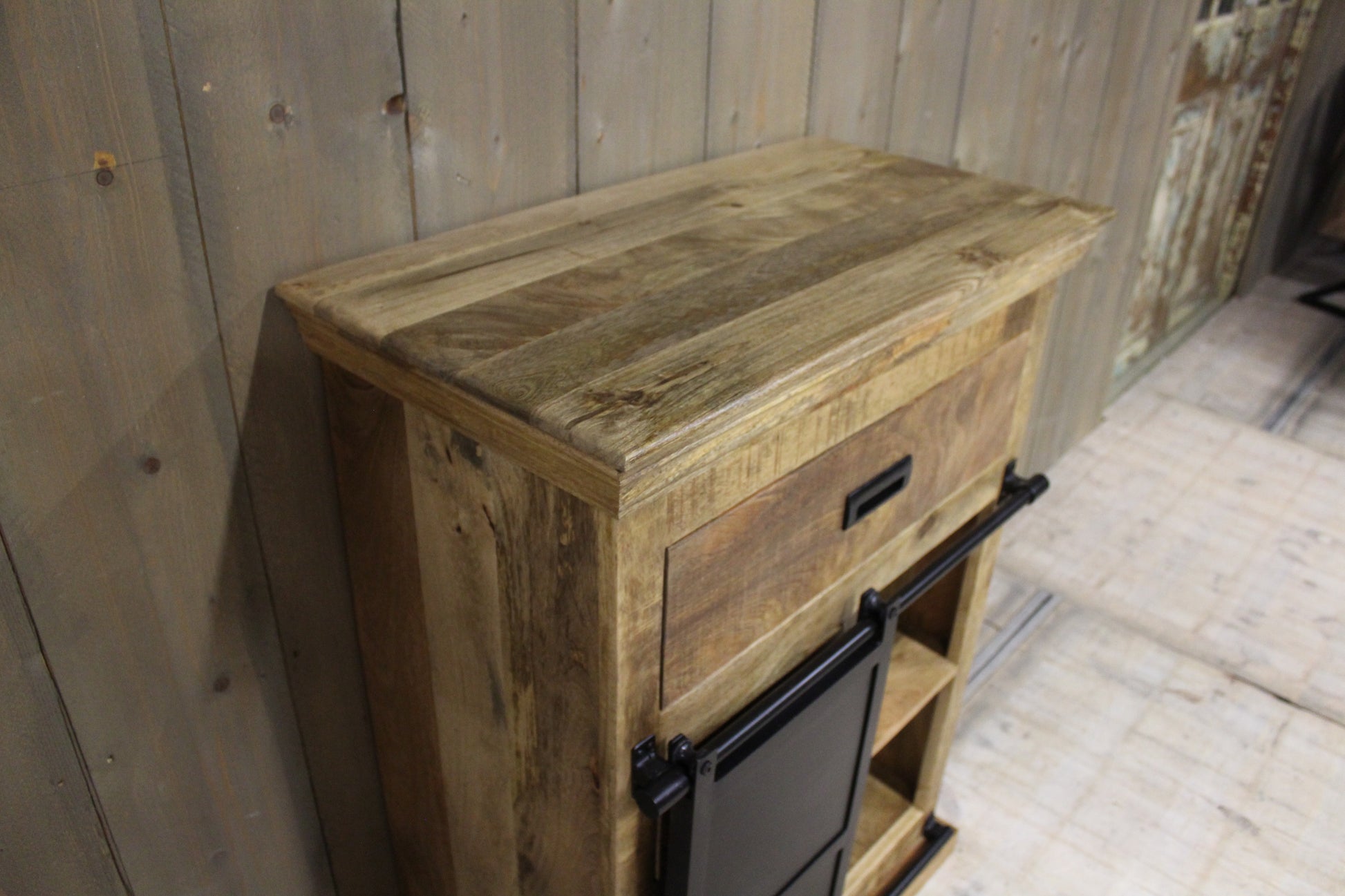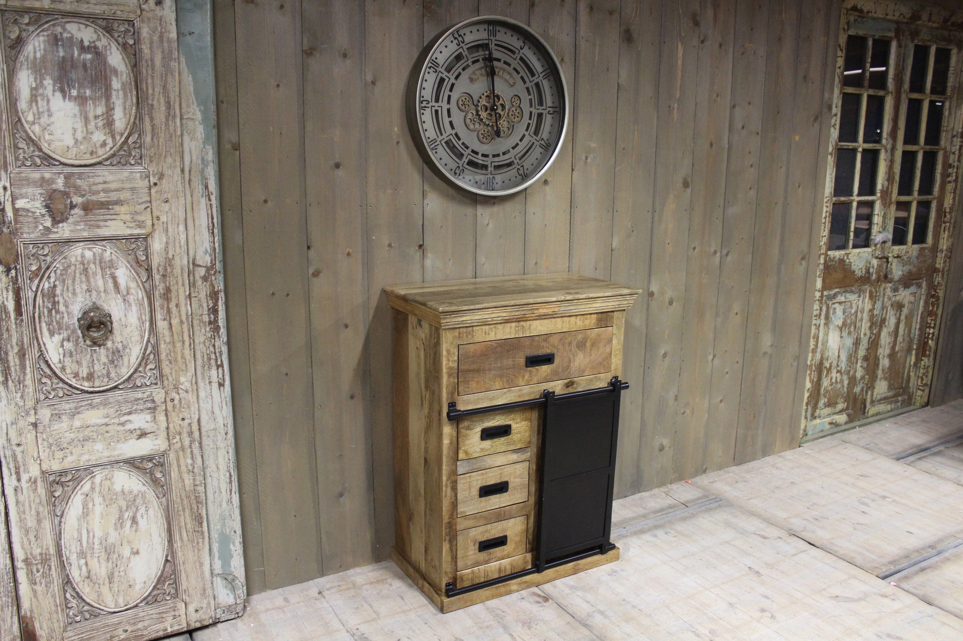 Deze mangohouten wandkast combineert een tijdloos design met functionaliteit en is een stijlvolle en praktische toevoeging aan de woonkamer, hal of slaapkamer.